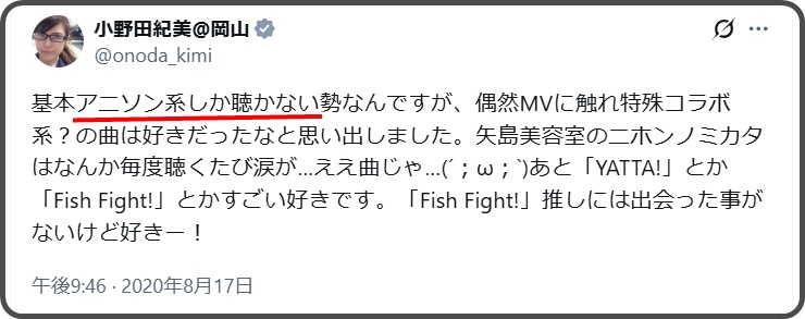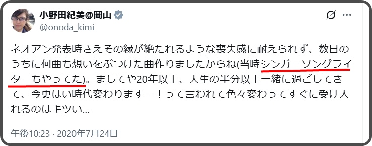 とはいえ、小野田氏は過去に自分はオタクではないとツイートしています。